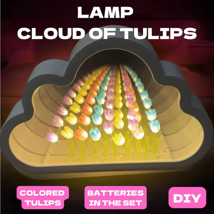 Embark on this artistic journey and illuminate your space with the beauty of tulips. Order your DIY Lamp Cloud of Tulips kit today and start crafting your own piece of elegant nature!